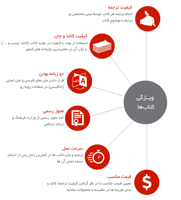 کیفیت ترجمه: انجام ترجمه هر کتاب توسط تیمی متخصص و مرتبط با موضوع کتاب